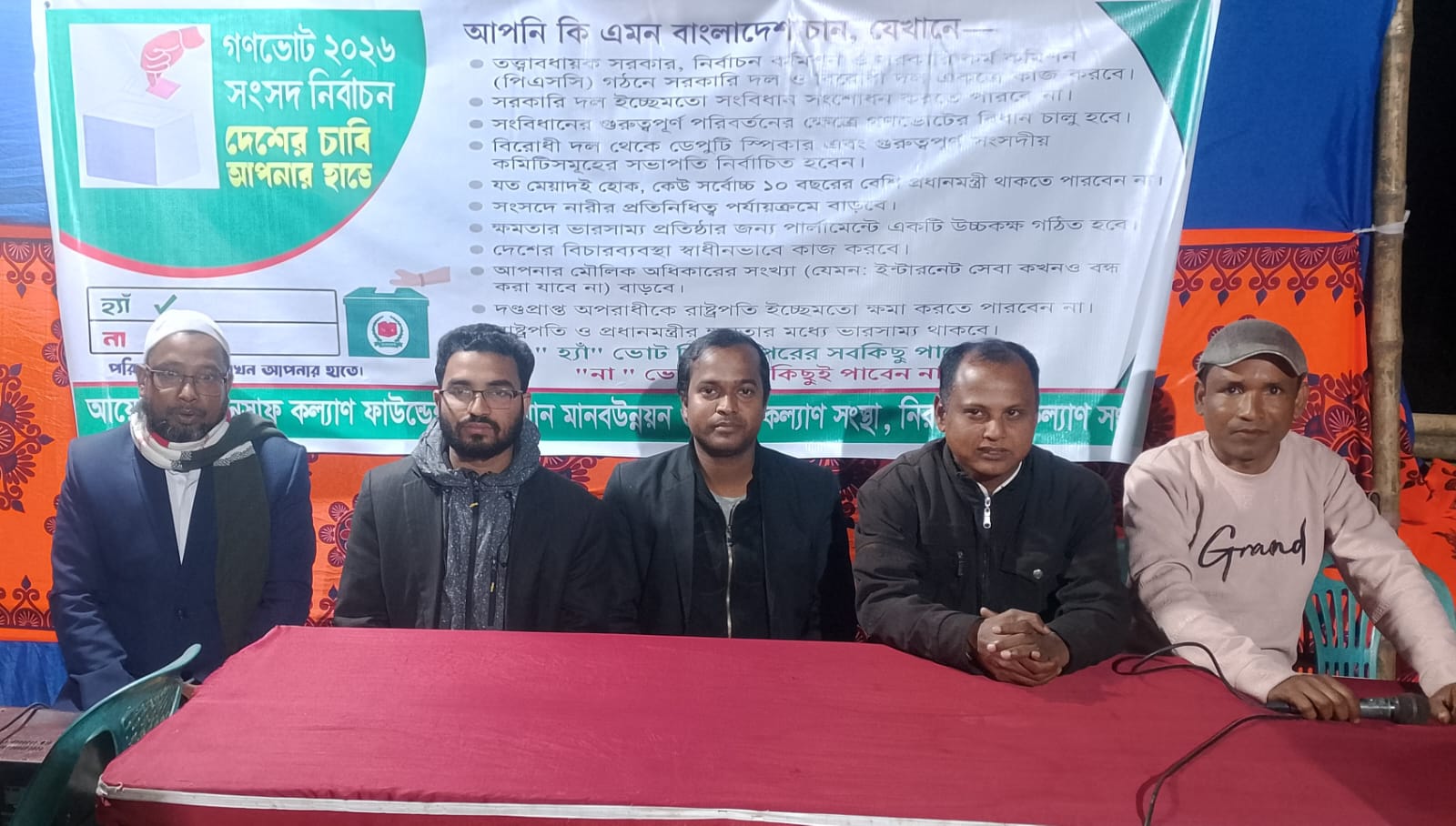 সভায় বক্তারা গণভোট ২০২৬ কে দেশের ভবিষ্যৎ নির্ধারণে জনগণের গুরুত্বপূর্ণ সুযোগ হিসেবে উল্লেখ করেন। আলোচনায় তত্ত্বাবধায়ক সরকার ব্যবস্থা, স্বাধীন নির্বাচন কমিশন, সংবিধান সংশোধনে গণভোট বাধ্যতামূলক, প্রধানমন্ত্রীর মেয়াদ সীমা, বিচার বিভাগের স্বাধীনতা ও মৌলিক অধিকার সুরক্ষার বিষয়গুলো তুলে ধরা হয়। বক্তারা বলেন, গণভোটে ‘হ্যাঁ’ ভোটের মাধ্যমেই এসব সংস্কার বাস্তবায়ন সম্ভব।