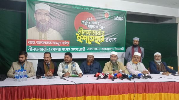 নীলফামারী সদর ২ আসনের জামায়াতে ইসলামীর নির্বাচনী অফিসে সন্ধ্যা ৬.৩০ মিনিটে নীলফামারী সদরকে একটি আধুনিক, টেকসই ও সমৃদ্ধ জনপদ হিসেবে গড়ে তুলতে নির্বাচনের ইশতেহারে উন্নয়ন পরিকল্পনার কথা তুলে ধরেছেন নীলফামারী-২